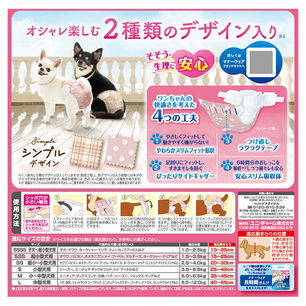 ユニ・チャーム マナーウェア 女の子用 SSSサイズ モーヴピンクドット・チェック 犬用おむつ 42枚 (犬・ドッグ)