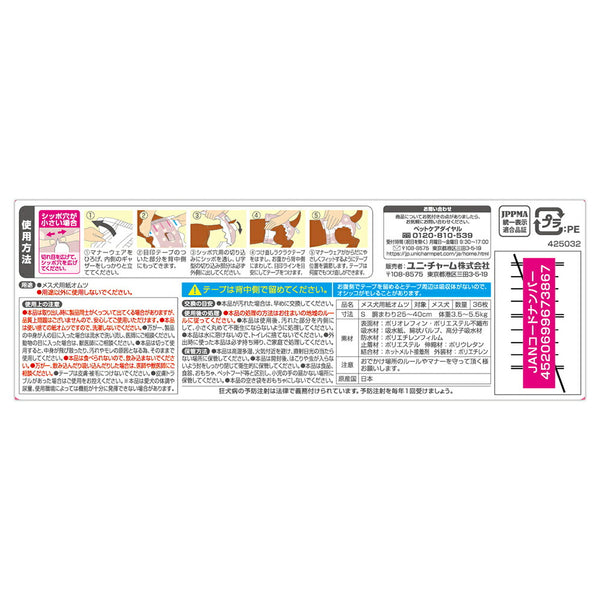 ユニ・チャーム マナーウェア 女の子用 Sサイズ モーヴピンクドット・チェック 犬用おむつ 36枚 (犬・ドッグ)