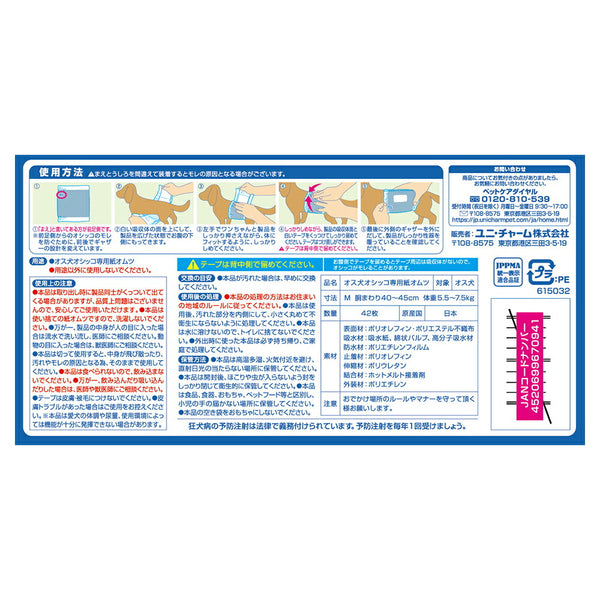 ユニ・チャーム マナーウェア 男の子用 Mサイズ モカストライプ・ライトブルージーンズ 犬用 42枚 (犬・ドッグ)