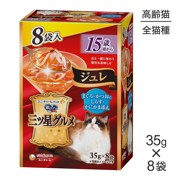 ユニ・チャーム 銀のスプーン 三ツ星グルメ パウチ ジュレ 15歳頃から まぐろ・かつおにしらす・かにかま添え ウェット 35g×8袋 (猫・キャット)