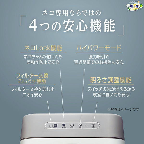 ※1 愛猫1頭(体重8kgまで)標準モード稼働時。普段の生活での消費者テストにて「ウンチの消臭効果があること」と回答した消費者89.5%。ユニ・チャーム調べ。