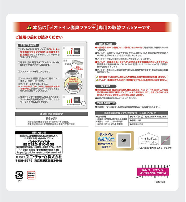 【メール便】ユニ・チャーム デオトイレ 脱臭ファン+ 専用取替フィルター システムトイレ用 1枚 (猫・キャット)[M便 1/1]