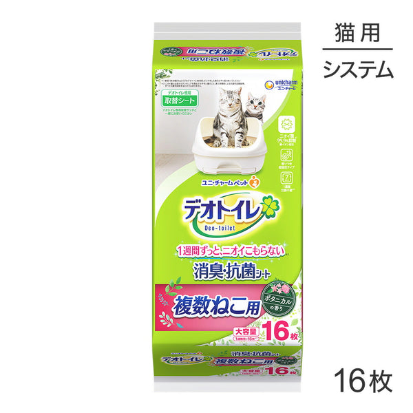 ユニ・チャーム デオトイレ 複数ねこ用 ふんわり香る 消臭・抗菌シート ボタニカルの香り システムトイレ用 16枚 (猫・キャット)