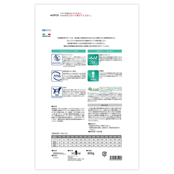 MONGE VetSolution ベッツソリューション 糖尿病サポート 療法食 800g (犬・ドッグ)[正規品]