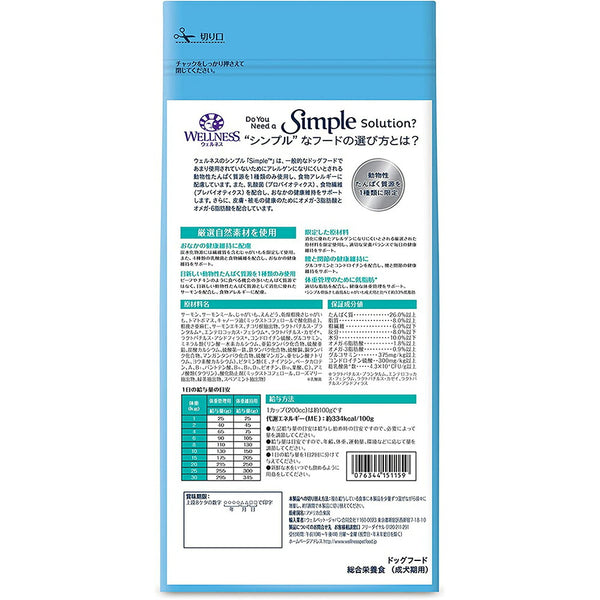 ウェルネス シンプル 全犬種 成犬用 1~6歳 体重管理 サーモン&じゃがいも 800g (犬・ドッグ)[正規品]