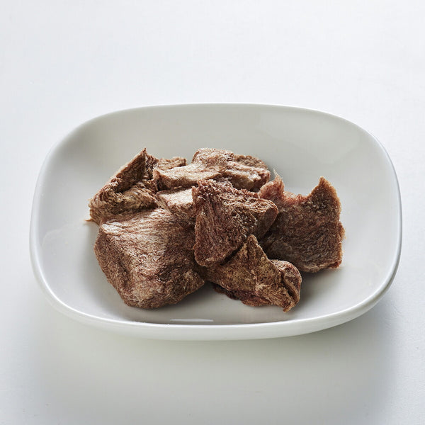 ・お湯で戻すと生肉をボイルしたような香りと食感が楽しめ、嗜好性がさらに高まります。