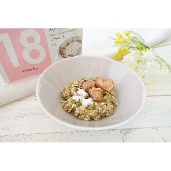 粉末がフードに混ざりにくい時は、一旦ドライフードを少量の水で湿らせた後、「アミノ18」をふりかけてください。