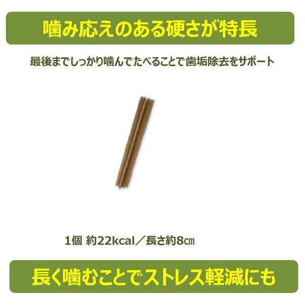 適度な硬さと独特な形状で、しっかり長時間噛むことができ歯垢の沈着を抑えます。人工着色料、香料、合成保存料不使用のデンタルケアおやつ。